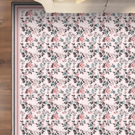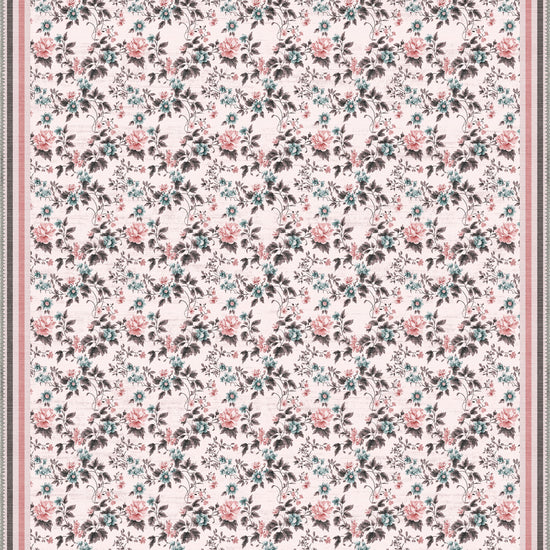 A delicate romance of blush petals and garden charm, the Beatrice Pink Rose Rug captures the poetic beauty of a countryside morning. Drenched in soft pinks, faded greys and a whisper of teal, this design brings a nostalgic sense of calm and feminine grace to your home—like pressed flowers in a handwritten letter. Every detail blooms with vintage elegance. Rows of painterly roses wind across a gentle cream backdrop, surrounded by soft-edged borders in complementary rose and taupe tones. There’s a fine sense of order here—but never stiffness. It feels like a bedroom from an old English novel or the parlour of a Parisian flat.