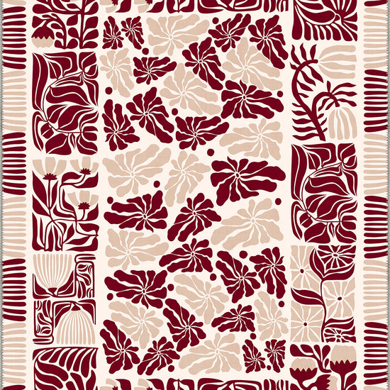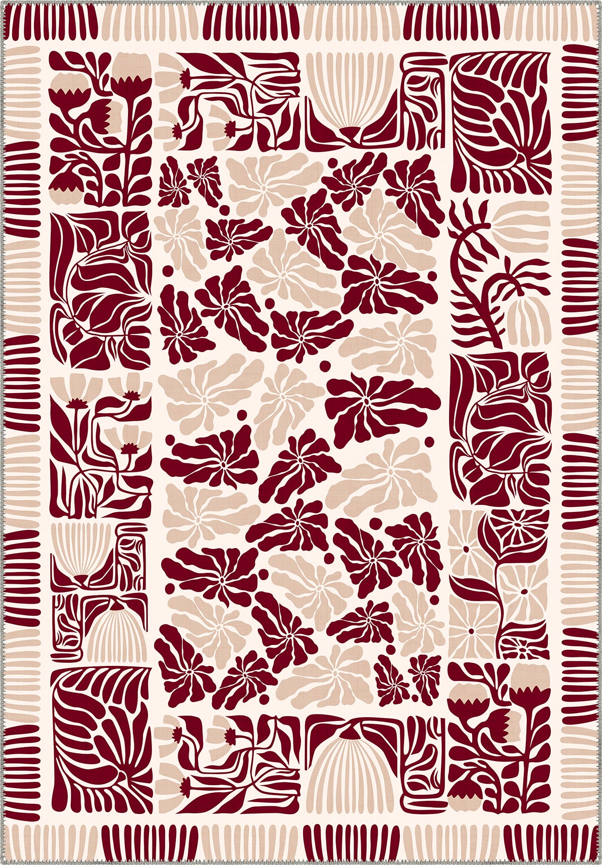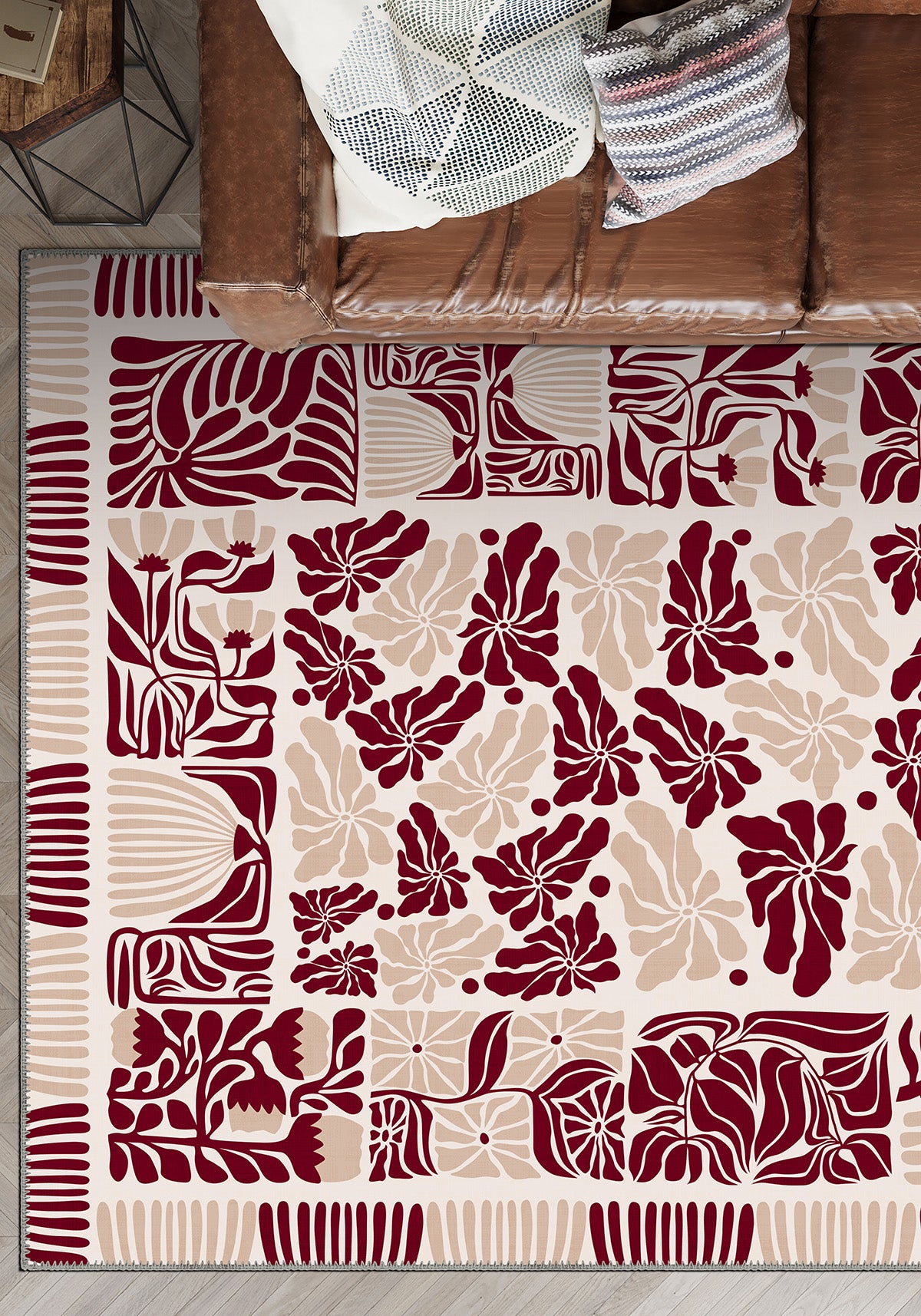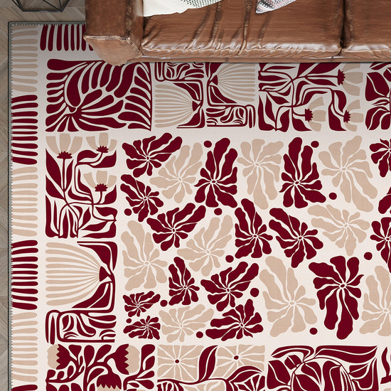 The Calanthe Burgundy Floral Rug brings striking artistry to your home with its rich burgundy tones set against a warm neutral base. Inspired by the flowing curves of Art Nouveau, its repeating floral motifs and structured panels create a balance between boldness and refinement. This is a floral rug that makes an impact while retaining timeless charm.