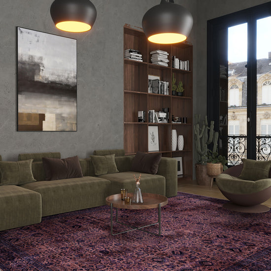 This is a plum Persian rug for homes that embrace atmosphere. For those who prefer moody evenings, textured fabrics and spaces that feel curated rather than staged. It brings richness without heaviness, pattern without clutter.