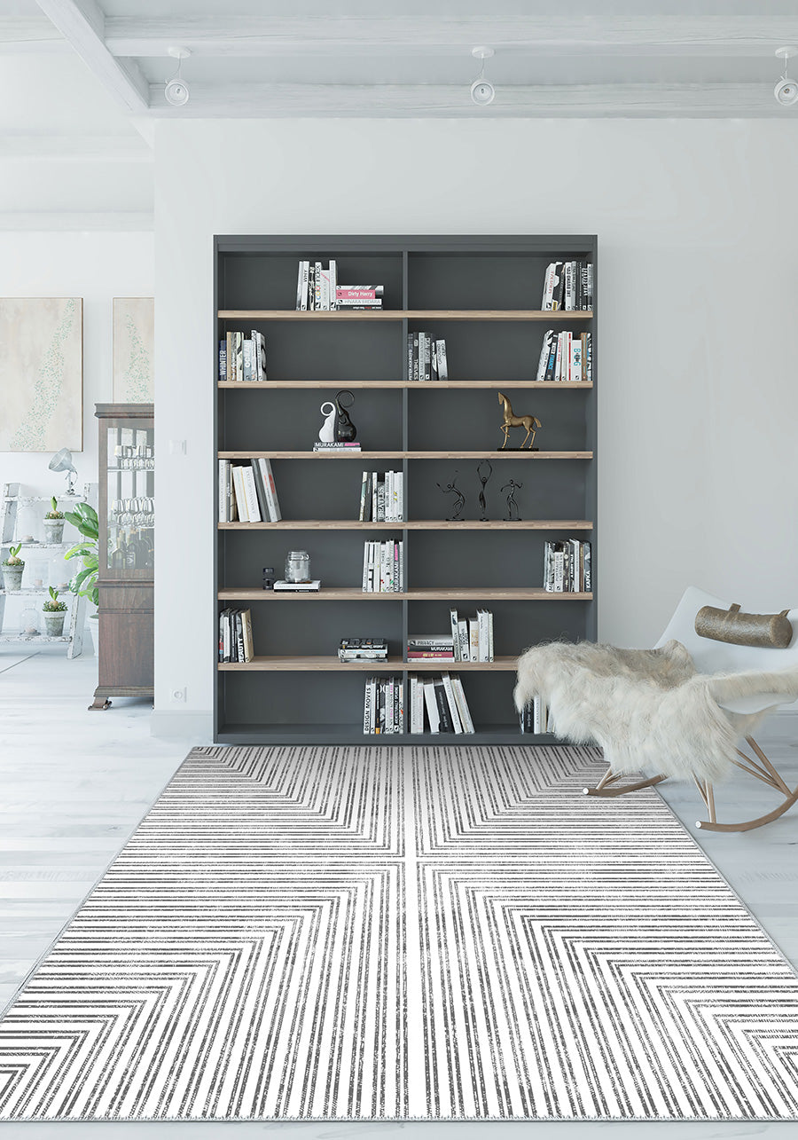 Kylie Grey Modern Striped Rug – Contemporary Elegance for Your Space