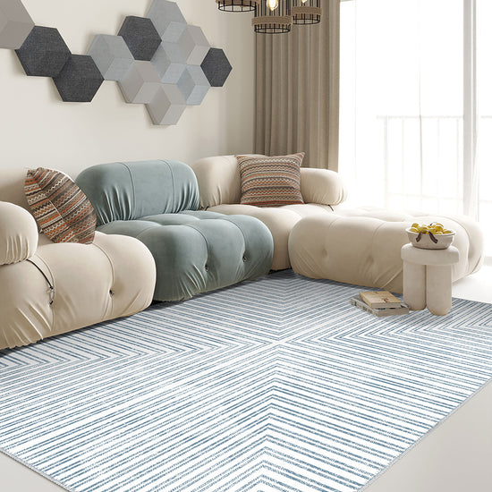Kylie Striped Washable Rug - Light Blue