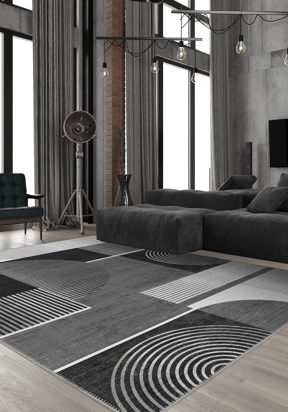 Peyton Geometric Black and White Rug – A Statement of Modern Elegance