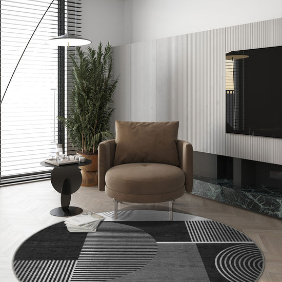 The Peyton Geometric Black and White Rug showcases a bold geometric design with clean lines and striking contrasts, making it a perfect centerpiece for contemporary spaces. This rug's monochromatic palette adds sophistication while its durable construction ensures lasting quality.
