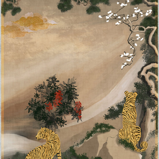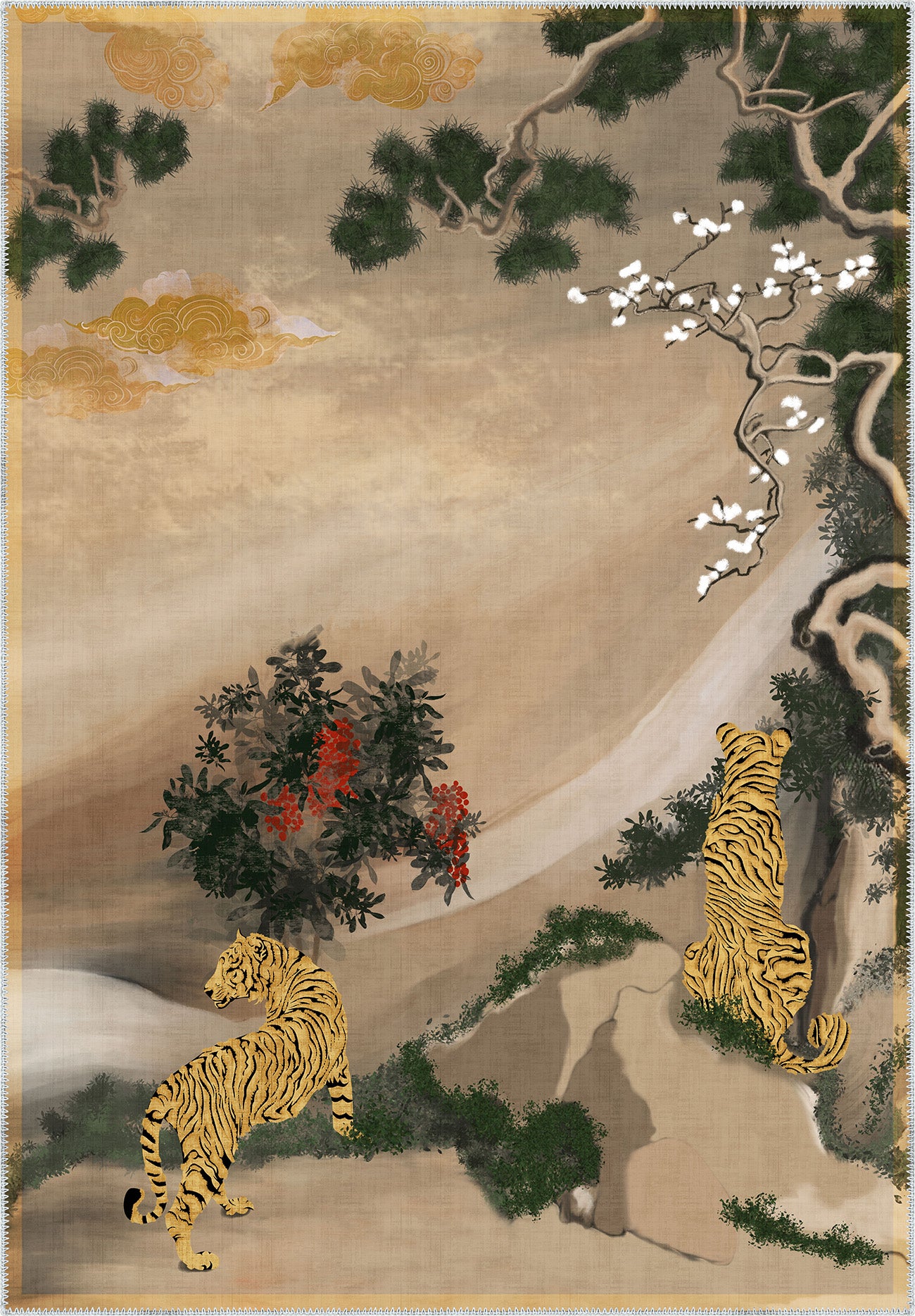 • Hand-Drawn Elegance: The meticulous details of the tigers, trees, and distant clouds reflect the skilled craftsmanship often found in Asian art, giving your home an exotic and cultured feel.