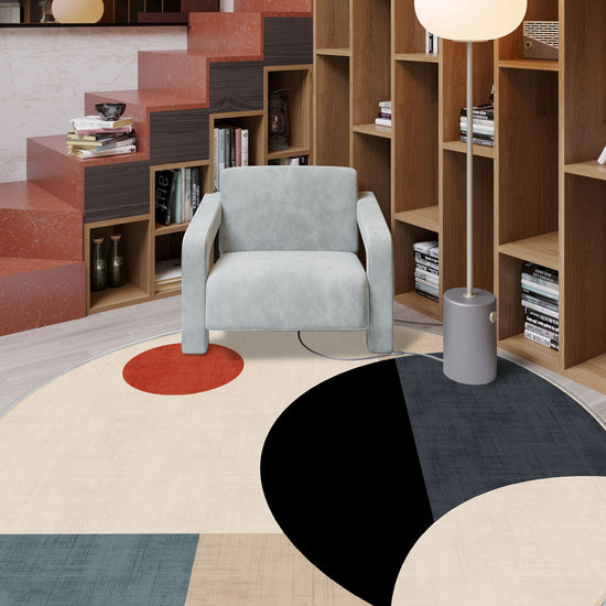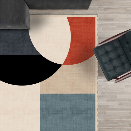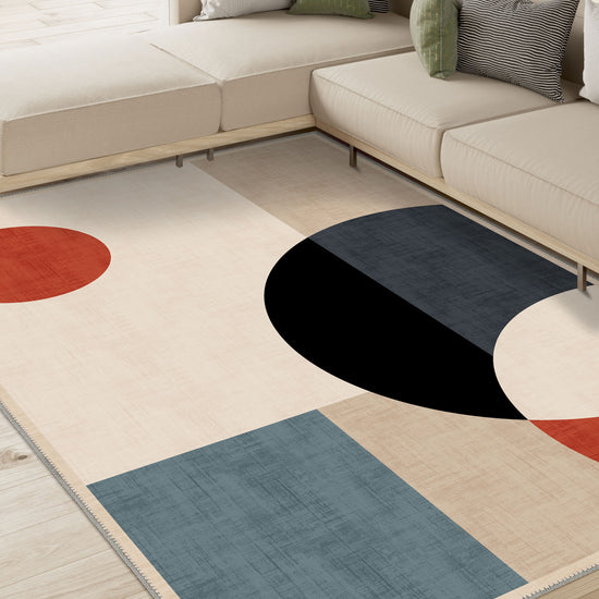 - Geometric Design: Featuring a captivating composition of circles, rectangles, and squares, this rug creates an artistic flair that will enhance modern and minimalist spaces.